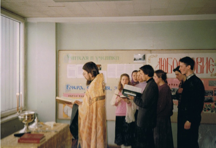 25 января 1992 года там совершил службу митрополит Смоленский и Калининградский Кирилл. По окончании ее Владыка обратился к собравшимся преподавателям и студентам: «Наше присутствие здесь — свидетельство зрелости нашего общества, обретения им духовной свободы. И самый факт, что и на богослужении, и в этом зале далеко не все обитатели Университета, что никто никого сюда не загонял — тоже признак свободы».