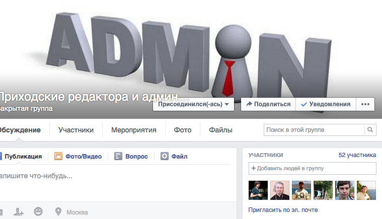 Закрытая группа для общения администраторов и редакторов приходских сайтов была создана в социальной сети Facebook во время проведения первого цикла семинаров для редакторов приходских сайтов Московской епархии.
