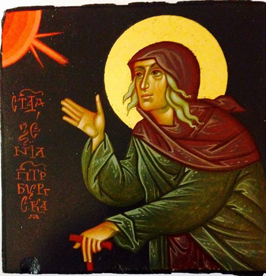 Через несколько месяцев меня рукоположили во диакона в московский Сретенский монастырь. Там тогда открылась иконописная мастерская, руководил которой мой фб-друг Владимир Щербинин. Ему-то я и отдал эту плитку, чтобы на ней мне написали икону блаженной Ксении.