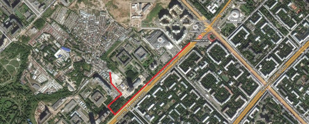 Пешком следует идти от станции метро «Университет» 965 метров вдоль проспекта Вернадского из центра, напротив ул. Крупской свернуть направо через сквер, пройти вдоль забора (забор должен быть справа) до шлагбаума.