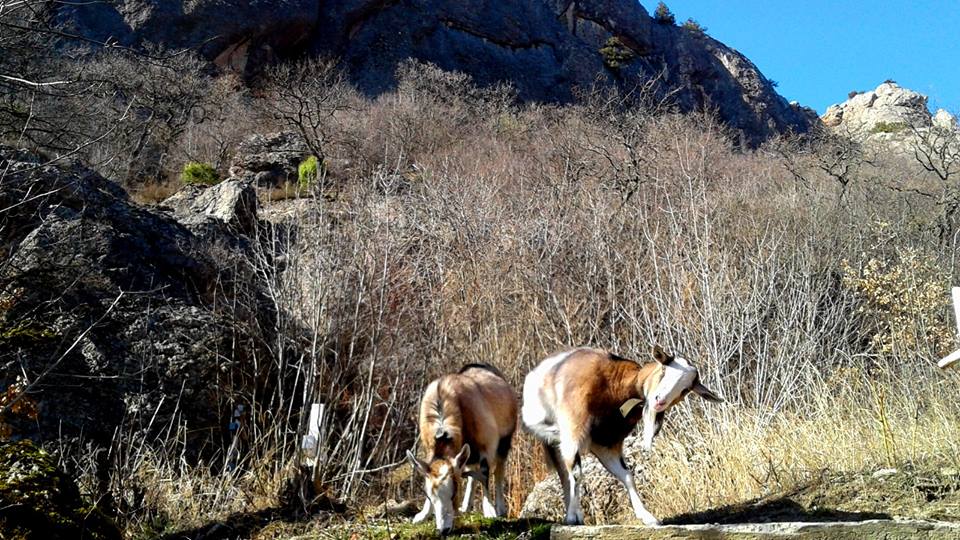 А потом, друзья, я пасла монастырских коз! Точнее, это они пасли меня. Как воспитанная девочка, поделилась с ними своей скромной трапезой – сухариками из рюкзака: присела после долгого восхождения на камушек, развернула кулёчек, а они тут как тут, сразу давай со мной дружить. Так и дружили дальше – всюду следовали по пятам, забирались со мной на скалы, в поисках цветочков и видов, лазали по лестницам и мостикам через ручейки, грелись на солнышке…