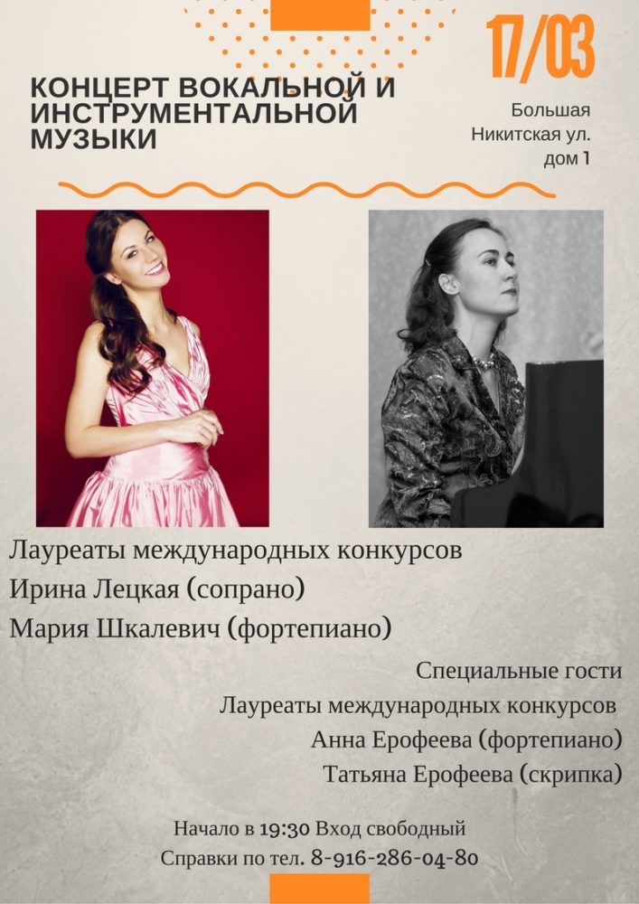 ПРИГЛАШАЕМ НА КОНЦЕРТ ВОКАЛЬНОЙ И ИНСТРУМЕНТАЛЬНОЙ МУЗЫКИ