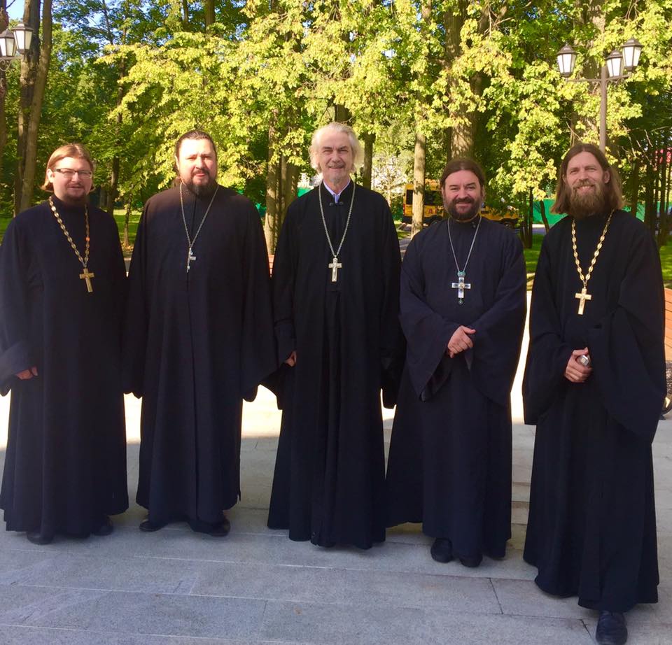 Преподаватели кафедры богословия гимназии свт. Василия Великого. Священники Александр Стародубцев и Алексей Кузнецов, протоиереи Владимир Вигилянский, Андрей Ткачев и Дионисий Лобов (зав. кафедрой)