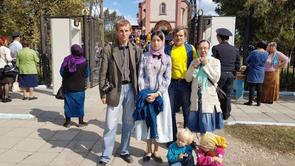 Александр Егорцев с семьей и детьми у Свято-Георгиевского храма в г. Кизляре (28 сентября 2017 года).