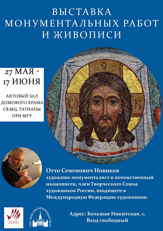 27 мая 2018 года (воскресенье) по окончании праздничной Божественной Литургии в Актовом зале храма состоится открытие выставки монуметальных работ и живописи нашего прихожанина Отто Семеновича Новикова.