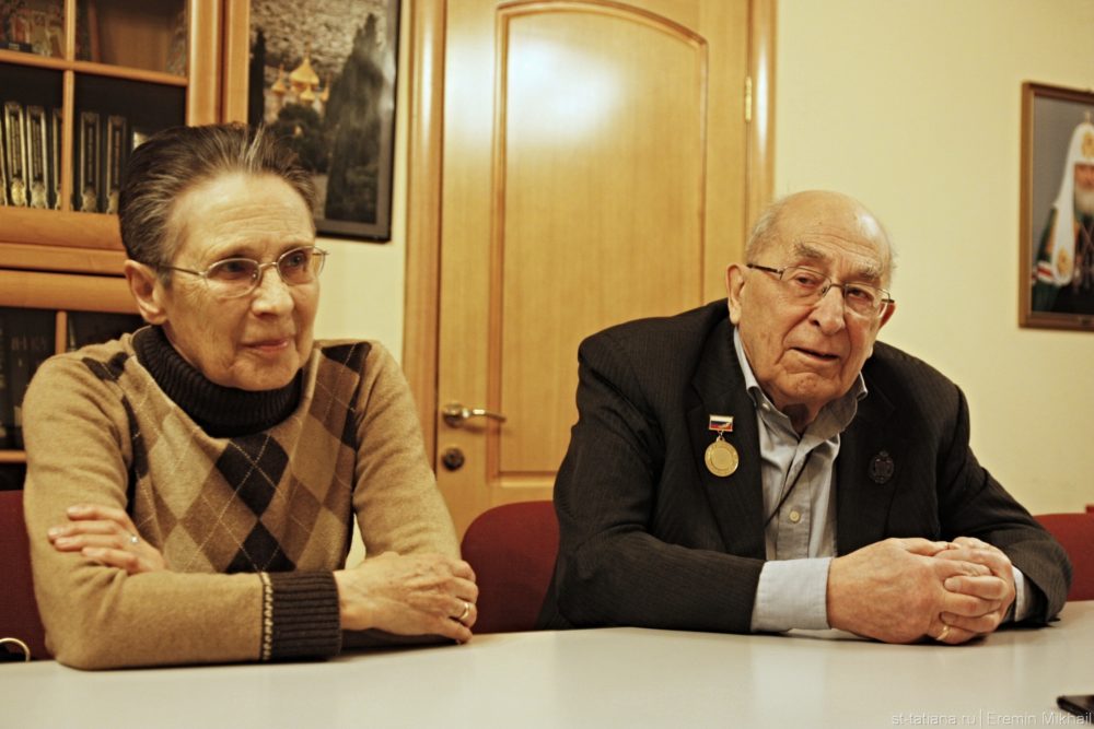 В преддверии Татьянина дня мы встретились со старейшими прихожанами храма св.мц.Татианы при МГУ математиками Григорием Александровичем и Татьяной Максимилиановной Любимовыми и поговорили о возвращении храма Церкви в 1995 году, о том, как изменился механико-математический факультет с 1950 года, как проходил переезд в здание на Воробьевых горах, и, конечно, о любви с первого взгляда и Москве 1940-х. Наша беседа проходила в кабинете настоятеля на 1 этаже храма, возвращение которого Церкви Григорий Александрович и Татьяна Максимилиановна отстаивали среди своих коллег в МГУ.