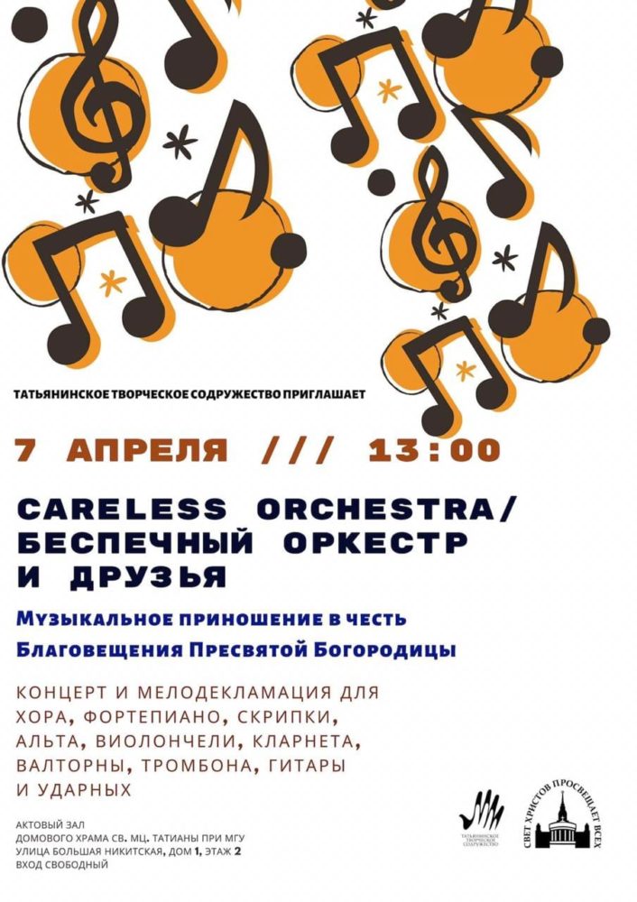 7 апреля 2019 года (воскресенье) в 13.00 Татьянинское творческое содружество приглашает на концерт коллектива «Беспечный оркестр».