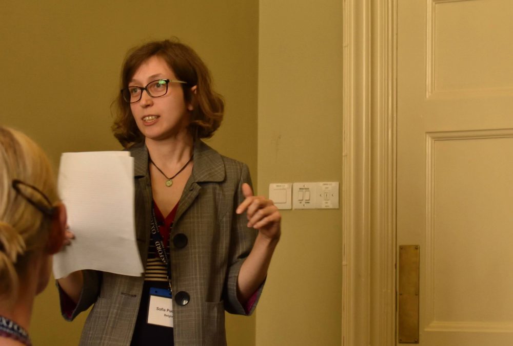 Софья Пучкова выступает с докладом в Оксфорде на 18-ой международной патристической конференции в 2019 году.