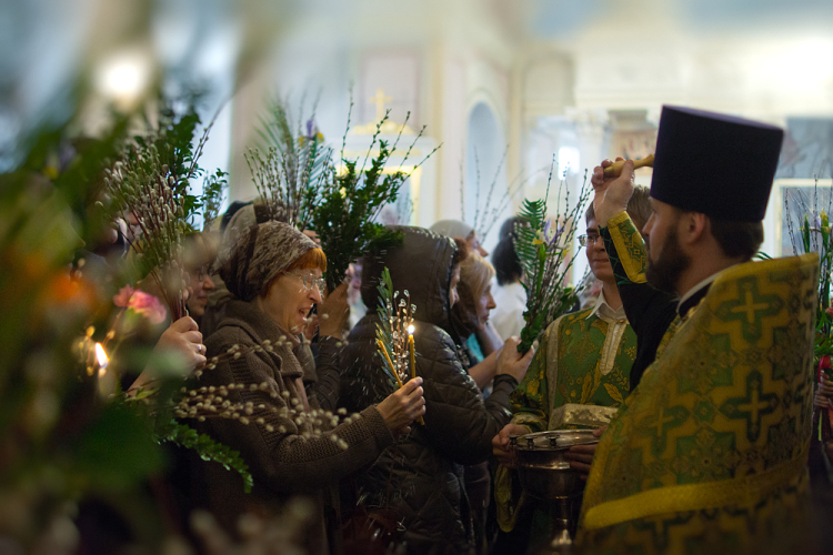 Вербу освящают накануне праздника на вечернем богослужении, после чтения Евангелия. Освященные веточки вербы уносят домой и хранят в святом углу рядом с иконами.